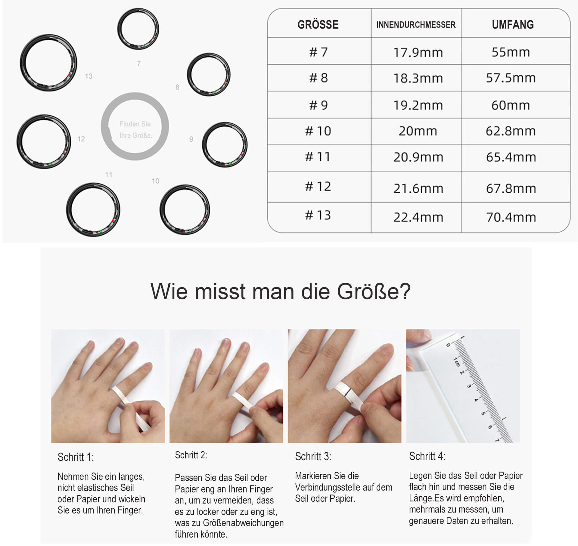 【Leichtes und langlebiges Design】 Der Smart Ring wurde sorgfältig im Hinblick auf Komfort und Stil entworfen und ist leicht und wasserdicht, um Ihrem täglichen Leben standzuhalten, vom Training bis zur Entspannung.